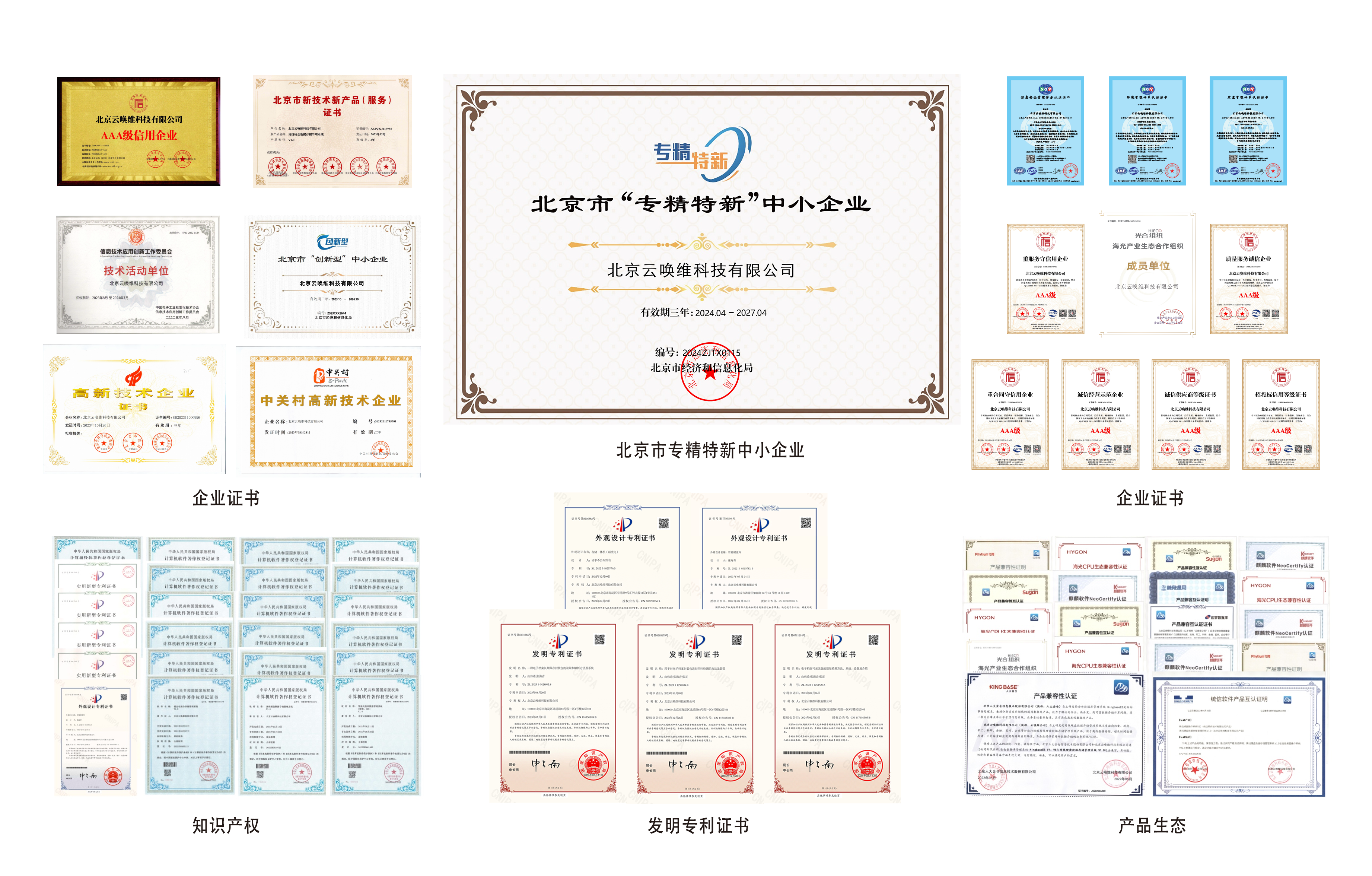 云喚維公司持續投入產品研發,先后取得了50+項知識產權,獲得北京市知識產權保護協會年度“最具創新力企業”稱號。